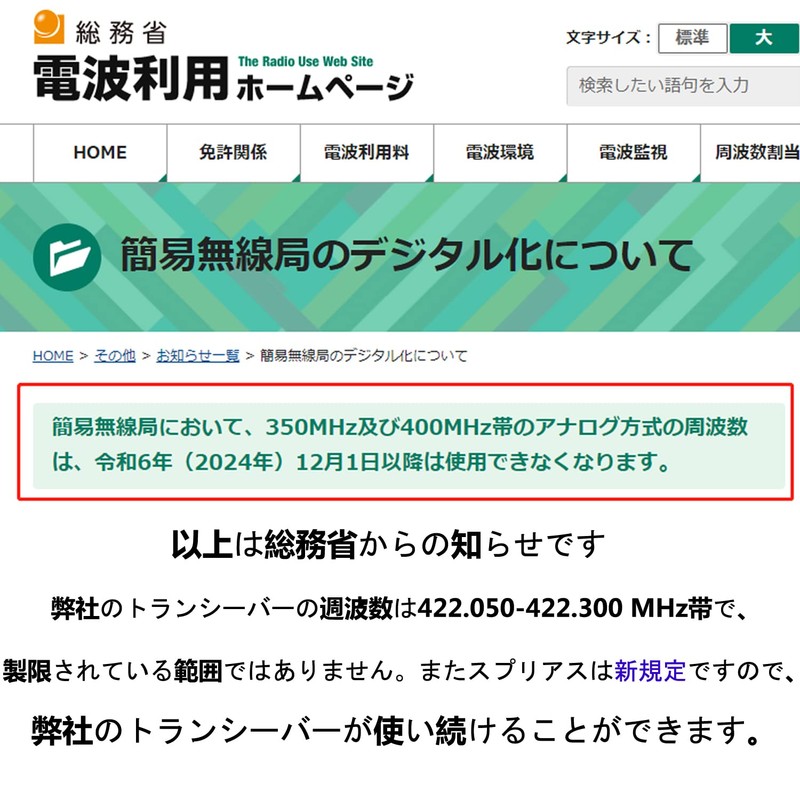 Transmitting / receiving frequency band: 422.050 - 422.300 MHz (12.5 kHz step).