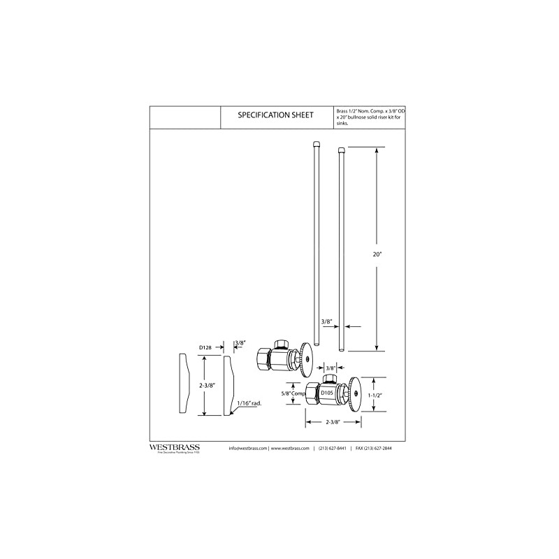 • Two (2) 3/8 in. x 20 in. bullnose faucet risers