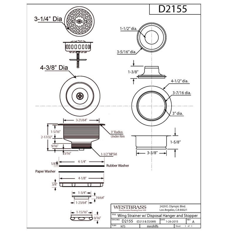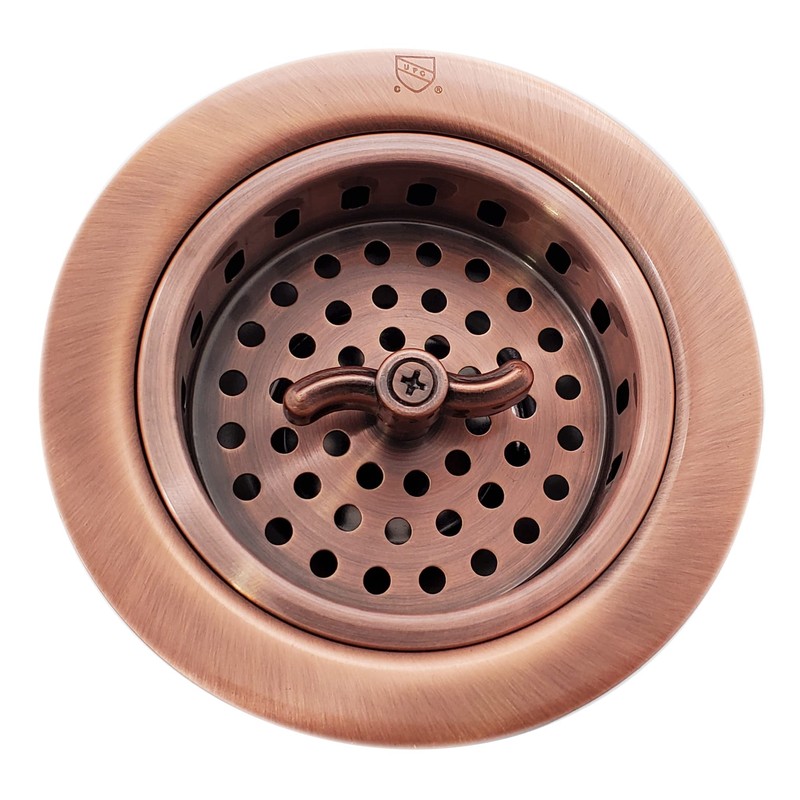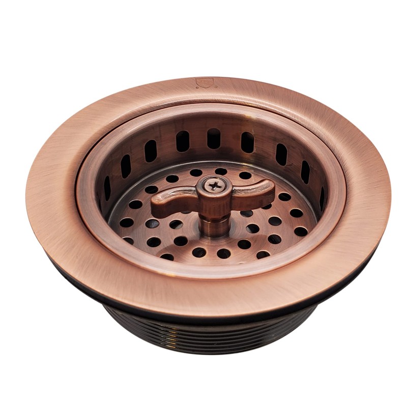 Westbrass D2155-11 Wing Nut Style Large Kitchen Basket Strainer with Waste Disposal Flange and Stopper, Antique Copper