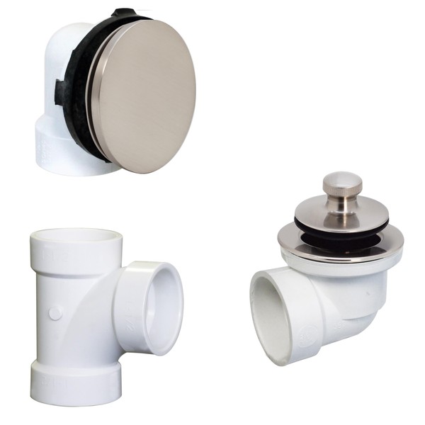 Westbrass D594PRK-20 Plumber's Pack Bath Waste Assembly with Lift & Turn Drain Plug, Illusionary Overflow Faceplate and Sch. 40 PVC Elbows, Stainless Steel