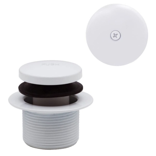Westbrass D93-50 1-1/2" Coarse Thread Tip-Toe Bathtub Drain Plug Trim Set with One-Hole Overflow Faceplate, 1-Pack, Powder Coat White