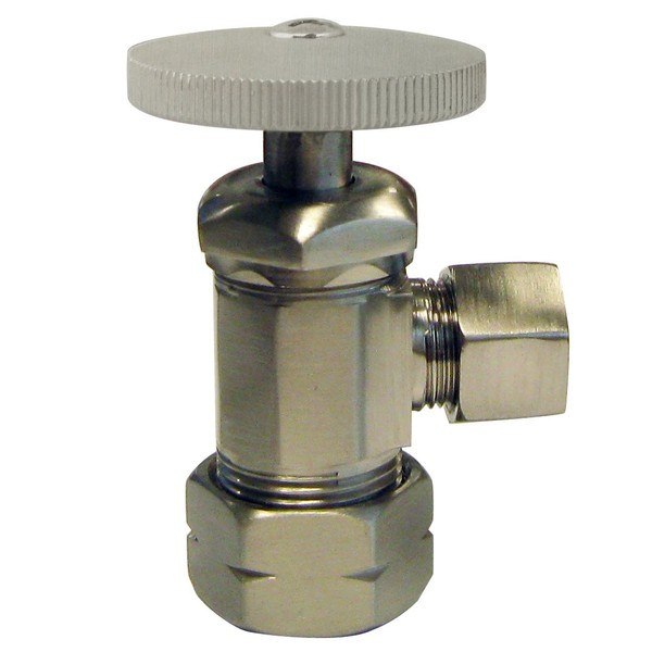 This Angle Stop Kit with Round Handle is the perfect compliment for water closets, faucets or tubs. It uses a 5/8 in. ID (1/2 in. Copper) Inlet, designed for soldering the valve in place, and a 3/8 in. OD Compression outlet with nut and ferrule. The valves use traditional compression closure for positive seal. It is available in a variety of finishes.