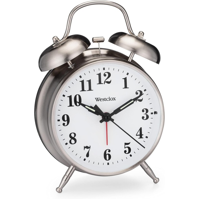 Westclox -Big Ben Twin Bell Alarm Clock | Loud Alarm Clock for Heavy Sleepers | Battery Operated Metal Clock with Backlight for Bedside Table, Bedroom, Kids Room, Desk (Silver, 4")
