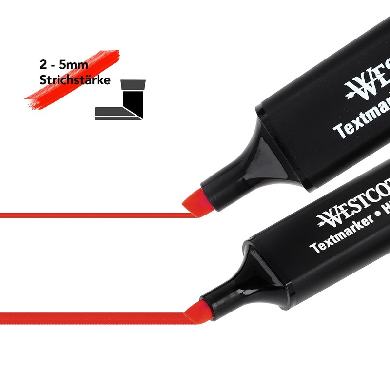- Precise highlighting of text areas - The cut chisel tip allows clean marking with a line width of 2-5 mm.