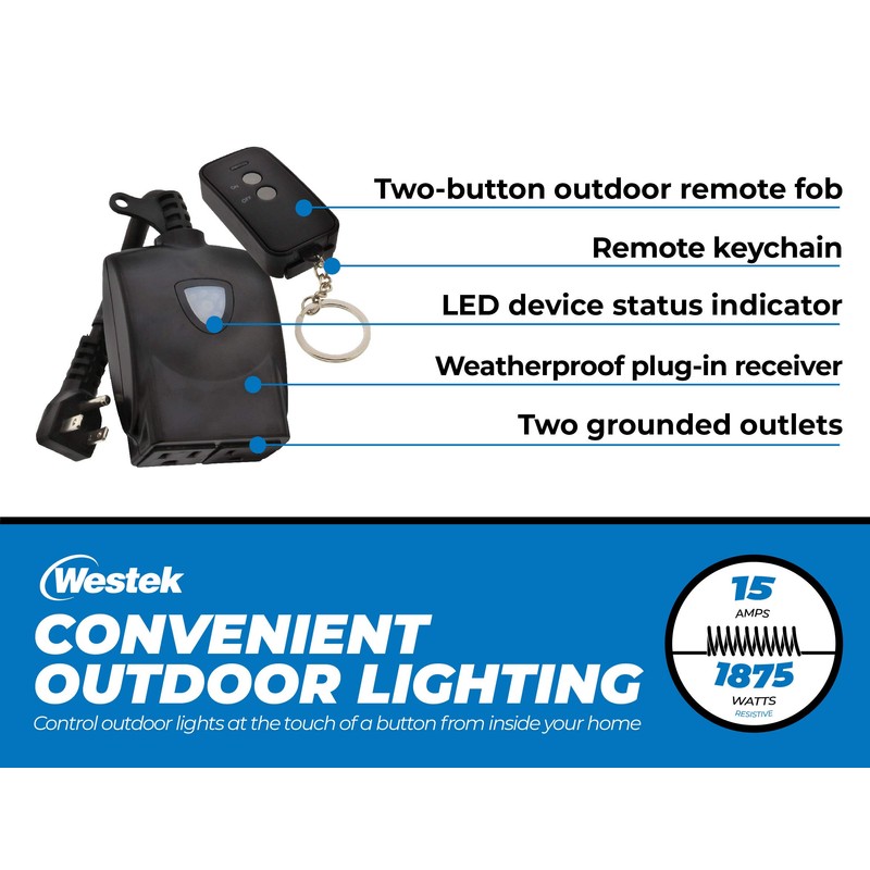 WESTEK Outdoor Remote Control Outlet Switch Kit with Wireless Receiver (RFK326LC)