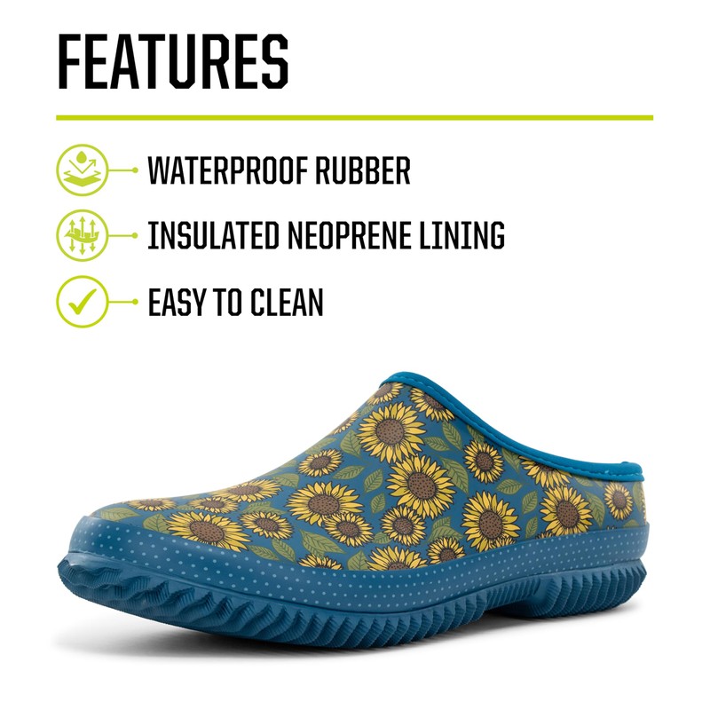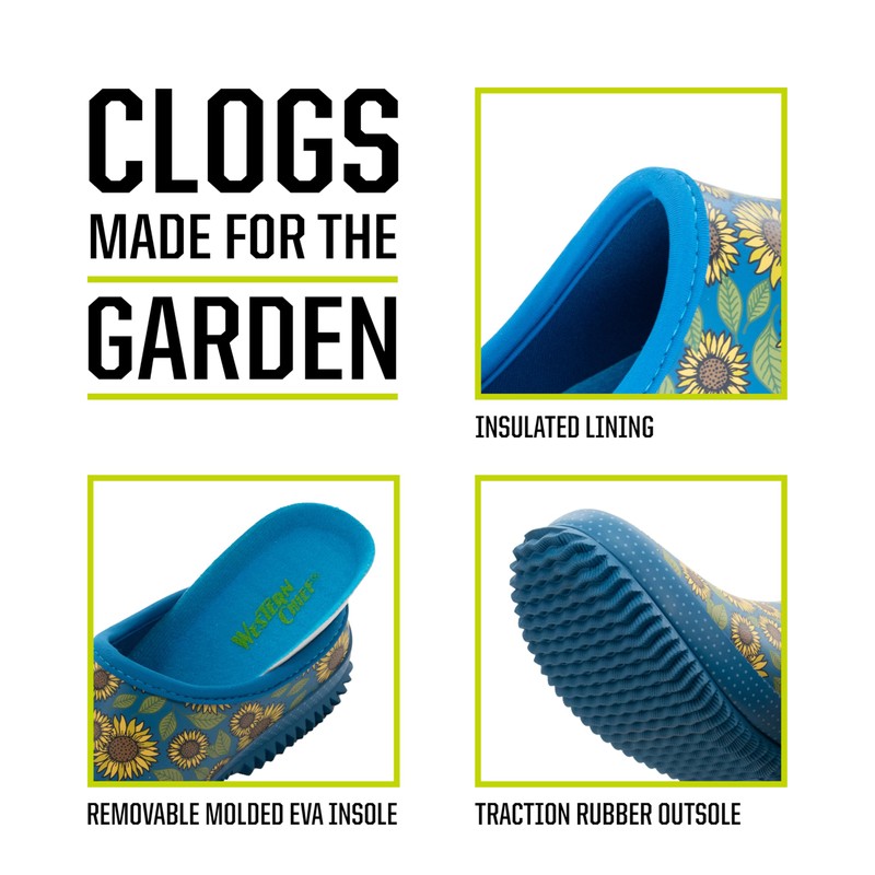 Western Chief Womens Waterproof Clog with Neoprene Lining and Rubber Outsole - Perfect for Garden and Outdoor Wear, Sunflower, 8