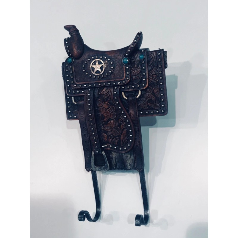 Western Double Wall Hanger Tooled Leather Looks Poly Resin Lone Star