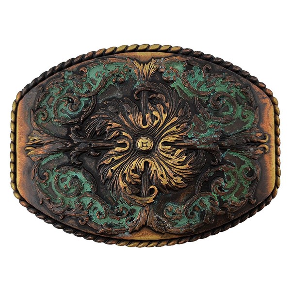 Western Floral Engraved Ornate Design Belt Buckle, Fits 1-1/2"(38mm) Belt (Antique Patina)