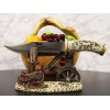 • Discover your inner cowboy with this Western decorative knife and holder. The sculptural stand features a horse saddle by a wagon wheel in a country farm scene. The featured knife is engraved on the metal of a galloping horse while the hand is sculpted with an image of a horse speeding through the open plains.