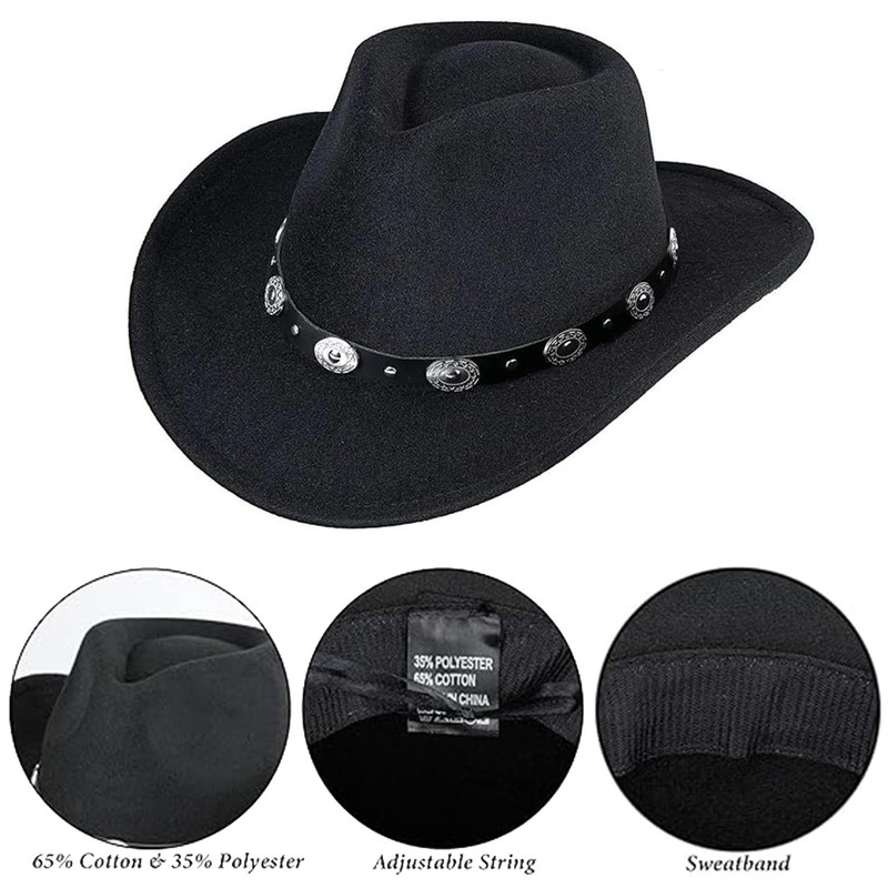- Material:65% Cotton 35% Polyester Felt Blend, Soft comfortable and breathable design.Size around 7-7 1/8(21.75 -22.75 inches), and around 3" Wire-Edge Brim,Great For Cowboys And Cowgirls styles.