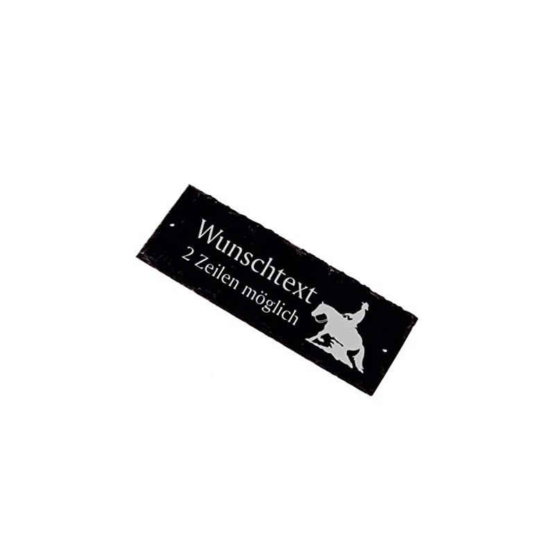 - Engraving: the laser engraving with your desired text and the "Western Riding" motif is made with high-precision industrial lasers. An upper small layer of the material is removed and the lighter natural stone is revealed. This makes our signs look like stylish decorations.