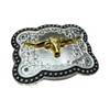 • Diseño de cuerno largo dorado: con un centro de mesa de cuerno largo dorado intrincadamente detallado, esta hebilla de cinturón es un tributo a la tradición occidental y la elección perfecta para aquellos que aman las hebillas de cinturón de vaquero para hombres.