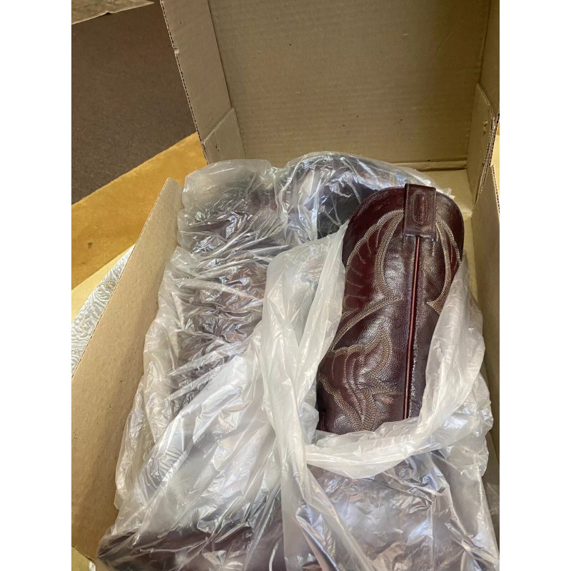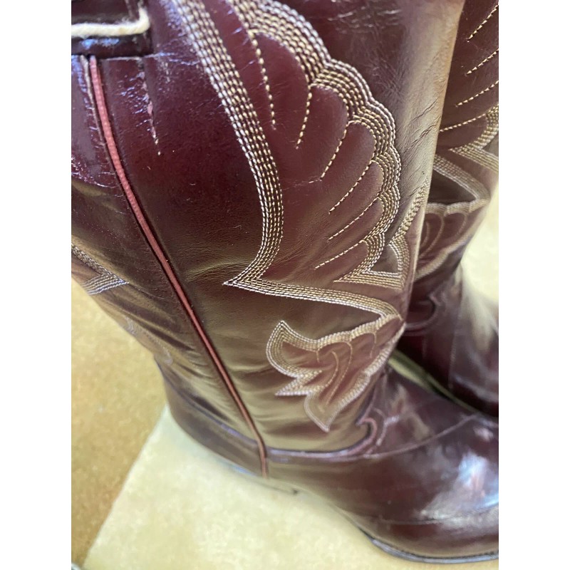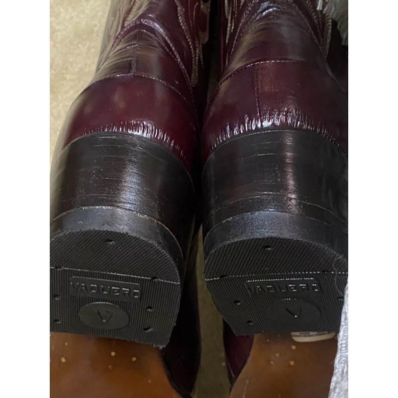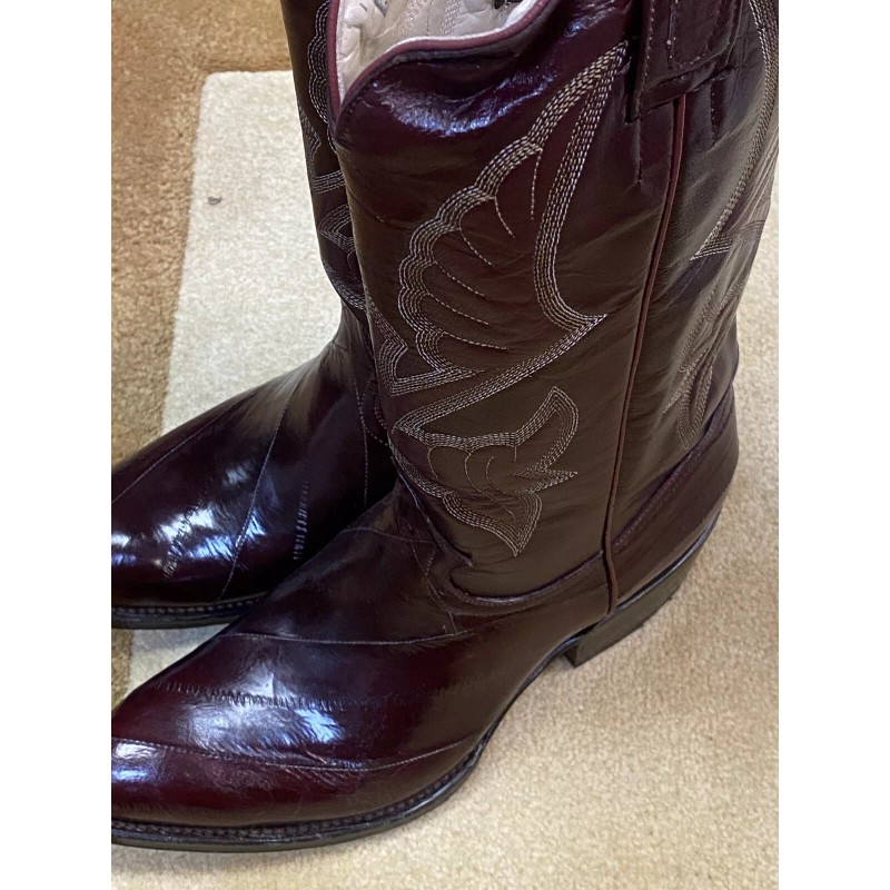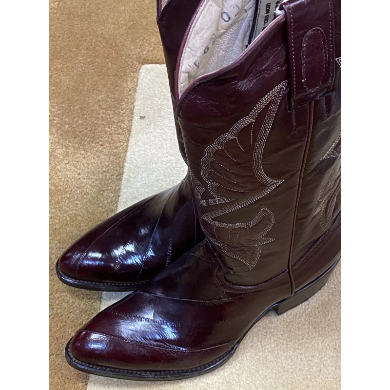 Western Vintage Wine Handmade Leon Mexico Eel Handstitched Cowboy Leather Boots NIB 9.5