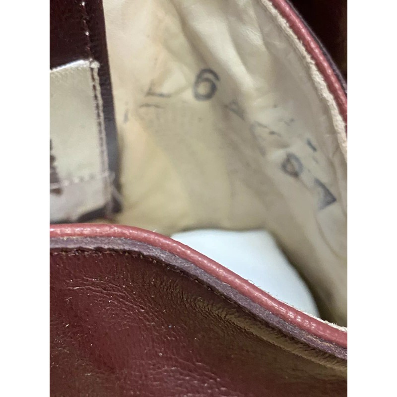 Add a touch of vintage style with these wine colored handmade cowboy leather boots from Leon, Mexico New in the box from the 1980’s Crafted with genuine eel skin and hand-stitched for a unique look, these boots are perfect for any occasion. The outsole is made of durable leather for long-lasting wear, and the boots come in a new condition with the original box.