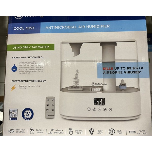 This Westinghouse tabletop humidifier is the perfect addition to any room that needs extra moisture in the air. With a 1.05-gallon tank, it can run for up to 40 hours on a single fill, making it ideal for long periods of dry weather. The cool mist humidification method is not only effective but also quiet, ensuring that you can sleep or work without any distracting noise. The humidifier is easy to use and maintain, with a compact design that makes it easy to move from room to room. It is suitable for use in rooms up to 150 square feet, making it a versatile option for any home or office. Whether you need to improve the air quality in your home or simply want to add some extra moisture to your skin, this Westinghouse humidifier is an excellent choice.