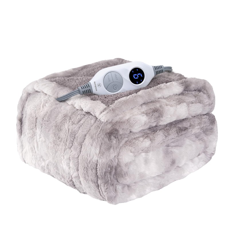 Westinghouse Electric Throw Blanket, Faux Fur Heated Blanket with 6 Heating Levels & 2-10 Hours Auto Off, Soft Cozy Sherpa Heated Blanket Washable Blanket (50" x 60" Throw Size, Light Grey)