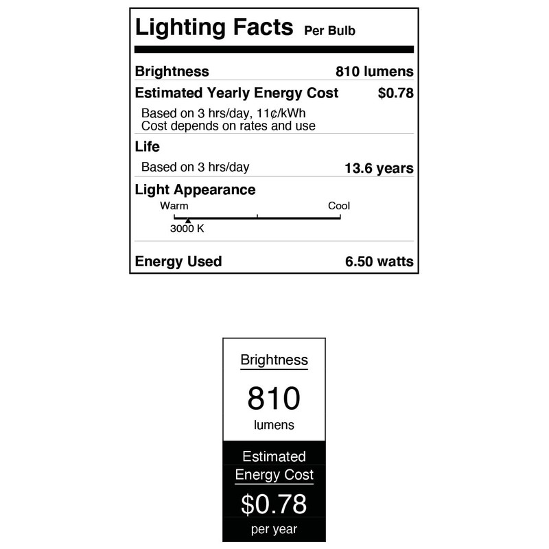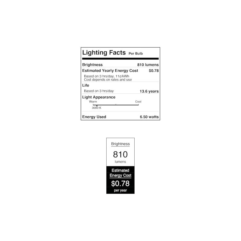 • This LED uses only 6.5 watts of energy, conserving up to 89% over the life of the bulb when replacing a 60-watt incandescent equivalent