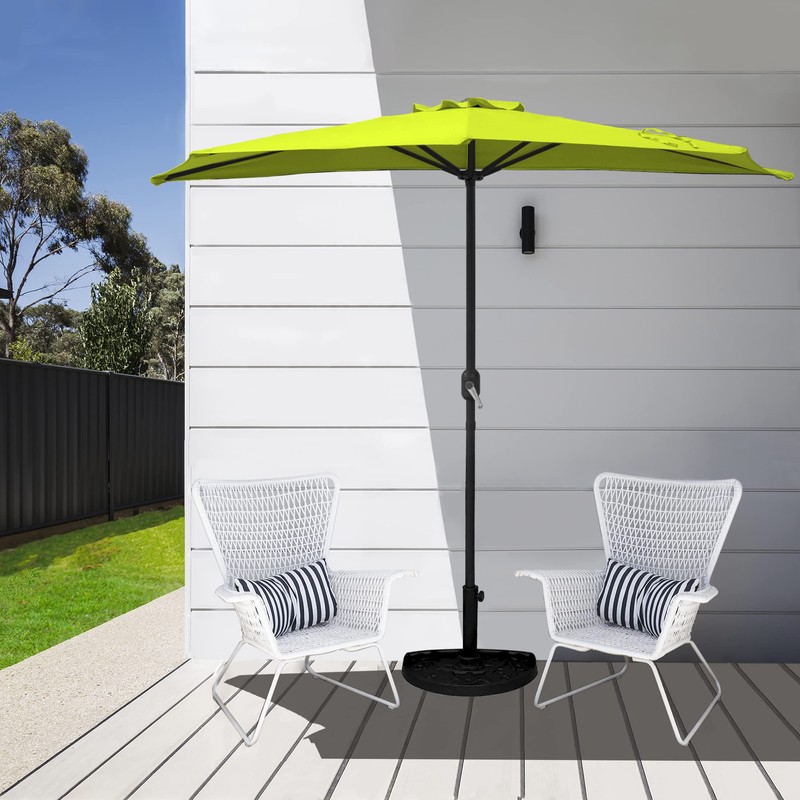 WestinTrends Lanai 9 Ft Outdoor Patio Half Umbrella, Small Grill Deck Porch Balcony Shade Umbrella with Crank, Lime Green
