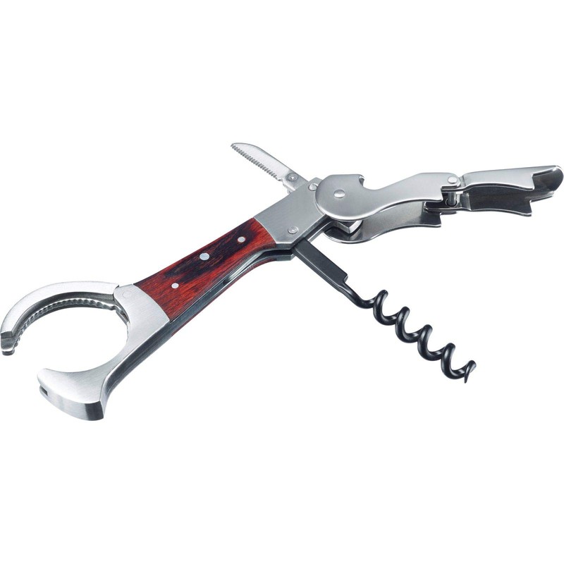 - Multifunctional waiter's cutlery made of high-quality stainless steel and elegant wooden inlay, functions: capsule cutter, screw cap opener, bottle opener/bottle opener, corkscrew