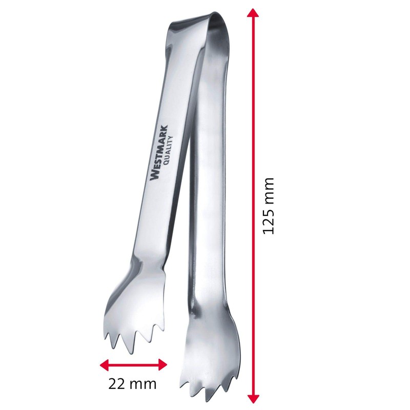 - Box contents: 1x Westmark sugar tongs, dimensions: 12.5 x 2.2 x 4.6 cm, weight: 26 g, material: stainless steel, colour: silver, 62652270