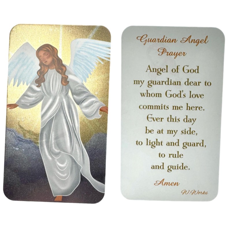 - Prayer cards display a serene angel image and a traditional guardian angel prayer. Made in the USA.
