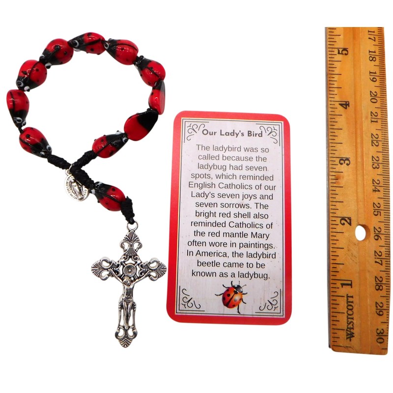 Westmon Works Ladybug Rosary Chaplet Ceramic Prayer with Metal Cross Hand-Painted Beads and Legend Card