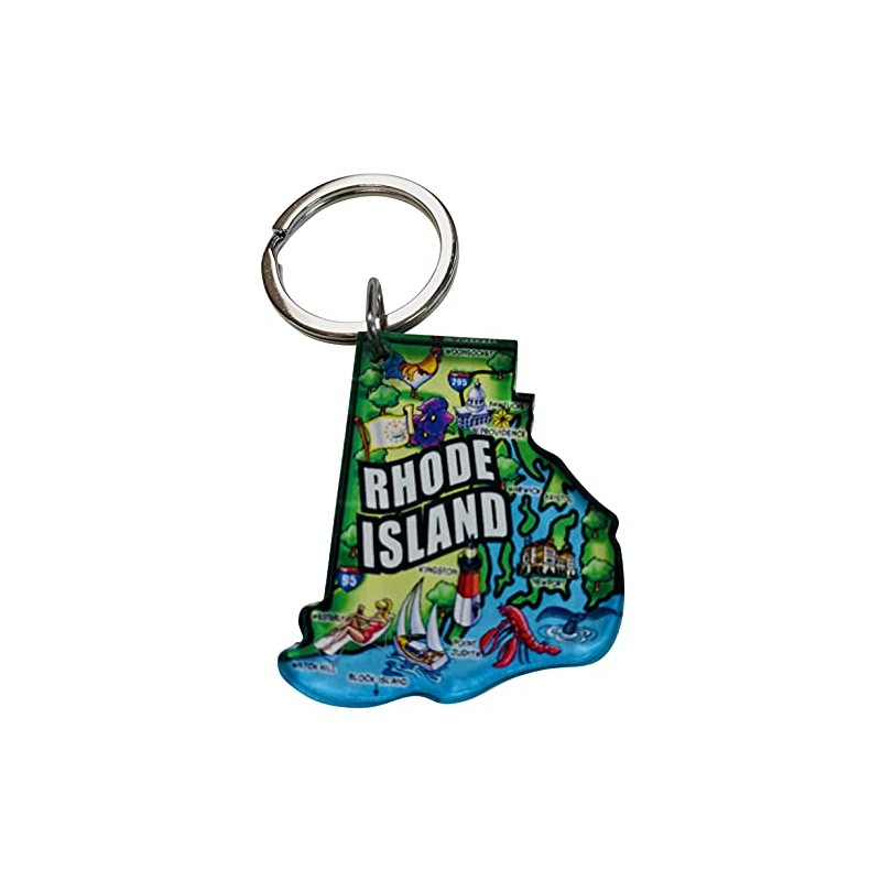 Westmon Works Rhode Island Keychain Acrylic Souvenir State Shape Key Chain Retro Style State Map Gift 2 Inch