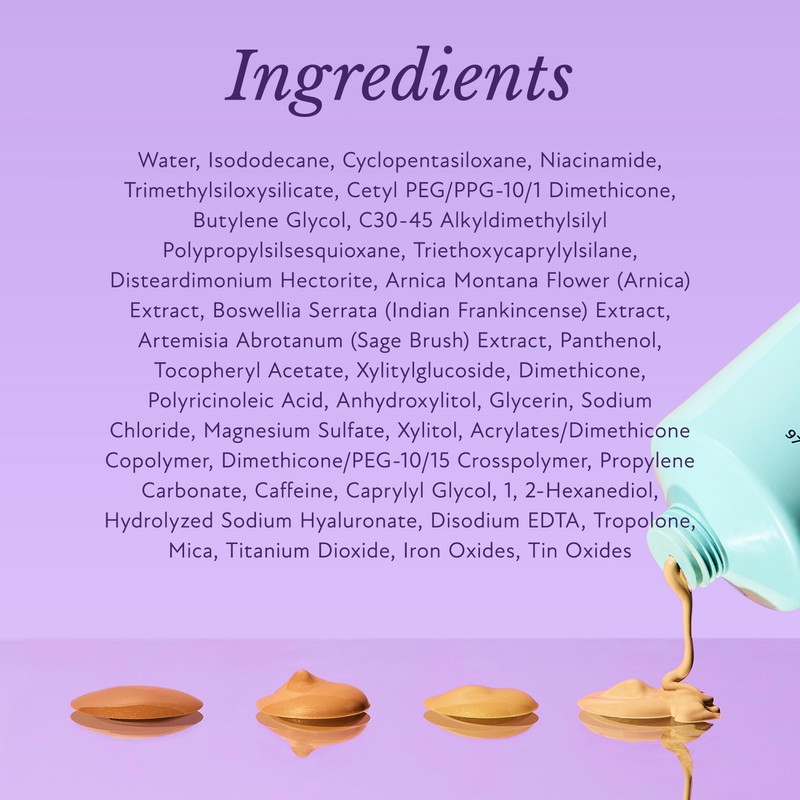 - SKINCARE-POWERED BENEFITS: A combination of Niacinamide, Hyaluronic Acid, Vitamin E & Arnica help visibly improve skin over time.