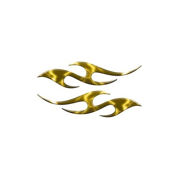 Simple Tribal Style Flame Graphics with Silver Outline in Yellow Lightning Strikes from Weston Ink. Flame decal kits work for just about anything you want to add that extra look to. We have other sizes listed and work great for Trucks, Cars, Motorcycles, Bikes, Helmets, Golfcarts, ATV, Off road vehicles, SUV, or anything with a flat smooth surface. Designed and produced by Weston Ink using the highest quality materials and latest printing technology. New inks also extend the life of the graphic for years to come without any fading. These decals make a great factory replacement option for anyone looking for something a touch more personalized.
