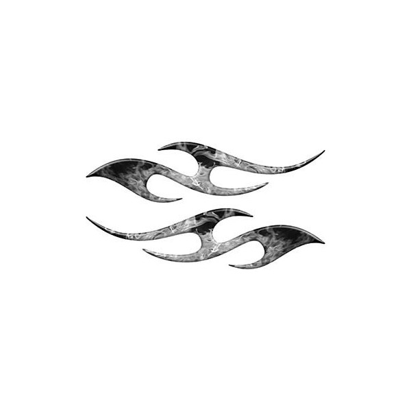 Simple Tribal Style Flame Graphics with Silver Outline in Gray Inferno from Weston Ink. Flame decal kits work for just about anything you want to add that extra look to. We have other sizes listed and work great for Trucks, Cars, Motorcycles, Bikes, Helmets, Golfcarts, ATV, Off road vehicles, SUV, or anything with a flat smooth surface. Designed and produced by Weston Ink using the highest quality materials and latest printing technology. New inks also extend the life of the graphic for years to come without any fading. These decals make a great factory replacement option for anyone looking for something a touch more personalized.