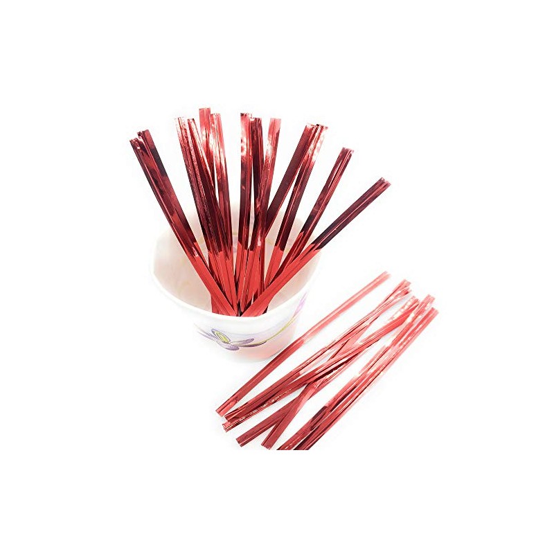Weststone 100pcs 3" Red Metallic Twist Ties for Pop Treat Party Favor Bags & More