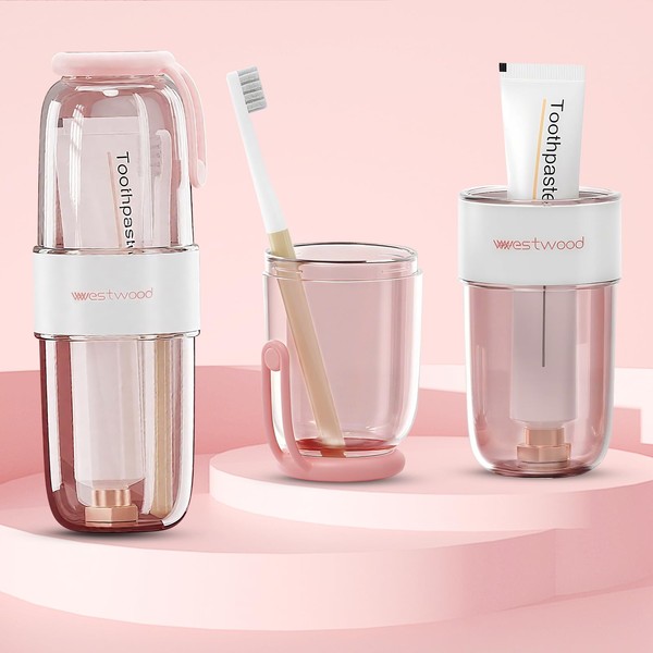 Westwood Travel Toothbrush Case Travel Toothbrush Holder with Cup, Large Toothbrush Container for Toothbrush Toothpaste Razor, Portable Toothbrush Holder with Cover for Home Business School(Pink)