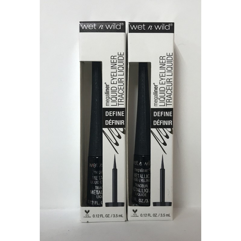 (2) Wet n Wild Megaliner Metallic Liquid Eyeliner-111A Cosmic Black-0.12oz. Each. Condition is New. Shipped with USPS First Class.