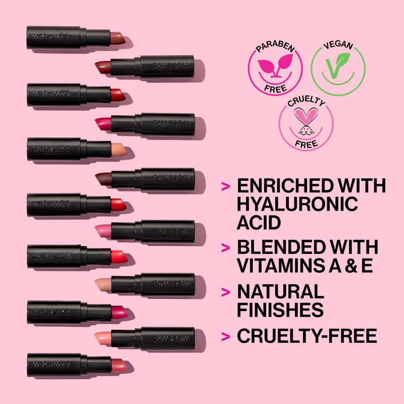 - Mega Last Matte Lipstick: This semi matte lipstick is infused with Hyaluronic Acid, Natural Marine Plant Extracts, Coenzyme Q10 and Vitamins A & E, for velvety full color coverage that nourishes lips