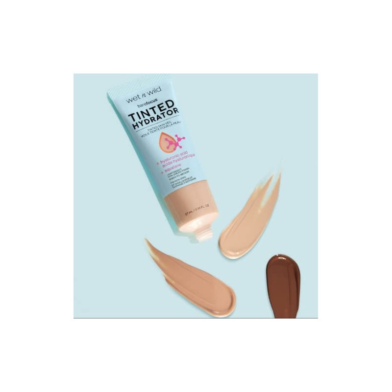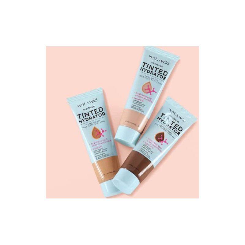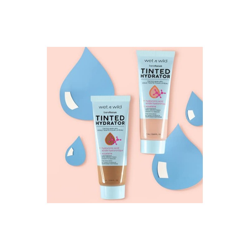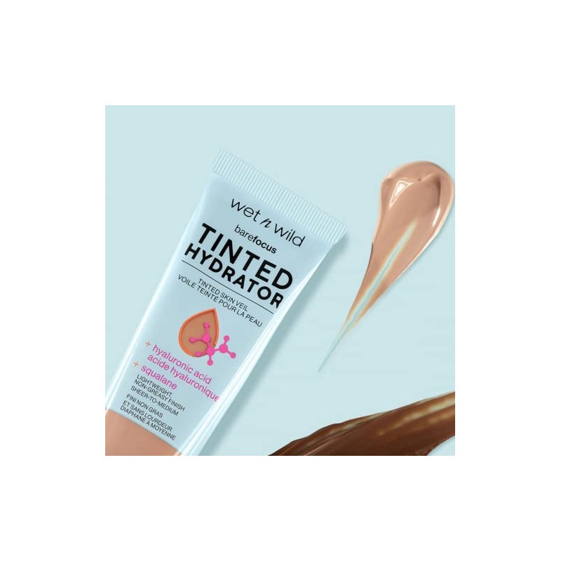 More than just a moisturizer, the Bare Focus Tinted Hydrator Tinted Skin Veil perfects with sheer-to-medium coverage, while granting your skin some seriously intense hydration. Formulated with hyaluronic acid and vegan squalane, this is a one-way ticket to quenched perfection! Buildable with a semi-matte finish, this two-in-one miracle creates a naturally flawless and nourished glow. Use it to transform a multi-step routine into a one-step regimen, so you’ll be ready in a splash with this lightweight, multipurpose, and super convenient formula. If that’s not a beauty dream destination, we don’t know what is! Simply tap, blend and build to your preferred coverage for hydrated, radiant, instant perfection. Select from our versatile range of shades to transport yourself to complexion paradise! wet n wild starts as everyone’s first and remains a lifelong destination for vibrant and accessible beauty. Delivering over 40 years of trend-forward and all-inclusive innovations, we are your trusted beauty expert that will keep you looking fabulous without ever betraying your budget. From the bold ‘n’ bright to the neutral ‘n’ nuanced, we set out to spoil you with options while setting the gold standard of achievability. So go ahead, get your feet wet with us again and go wild with your imagination!