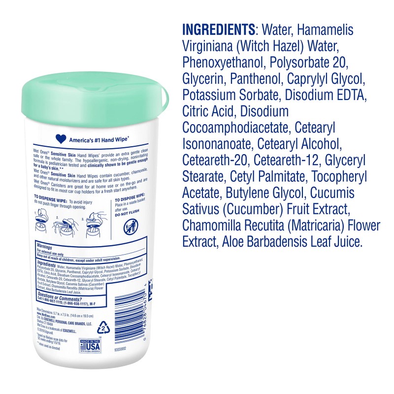 COMPARE WET ONES SENSITIVE SKIN HAND AND FACE WIPES | |||
