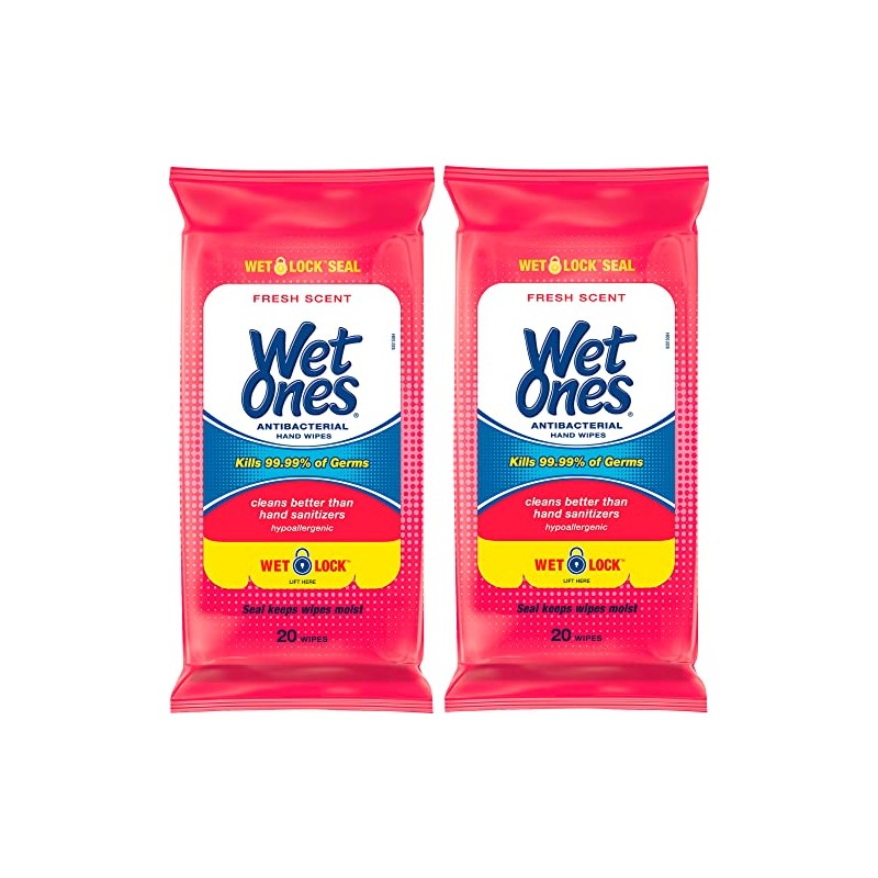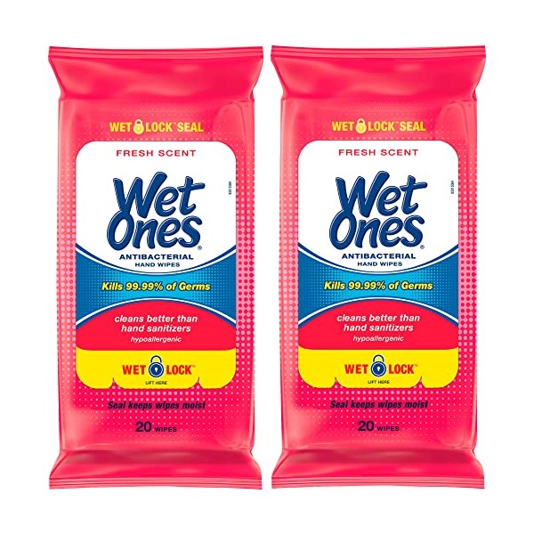 WET ONES Antibacterial Hand Wipes, Fresh Scent 20 ea (Pack of 2)