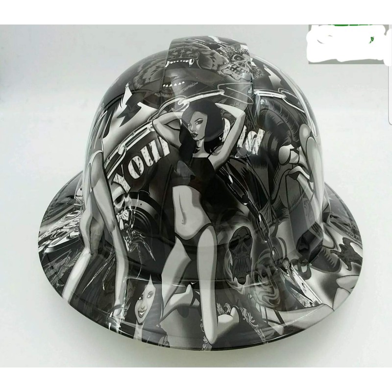 Wet Works Imaging Customized Pyramex Full Brim Biker Babes Hard Hat with Ratcheting Suspension