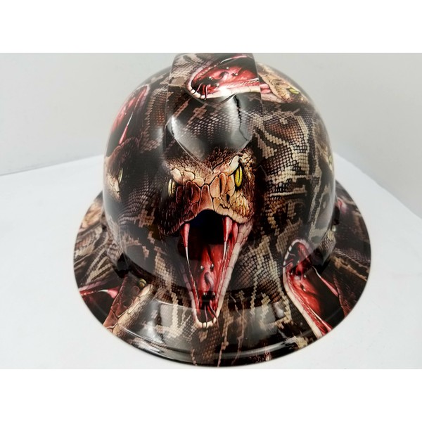 Wet Works Imaging Customized Pyramex Full Brim Snake BITE Pit Viper Hard HAT with Ratcheting Suspension Custom LIDS Crazy Sick Construction PPE