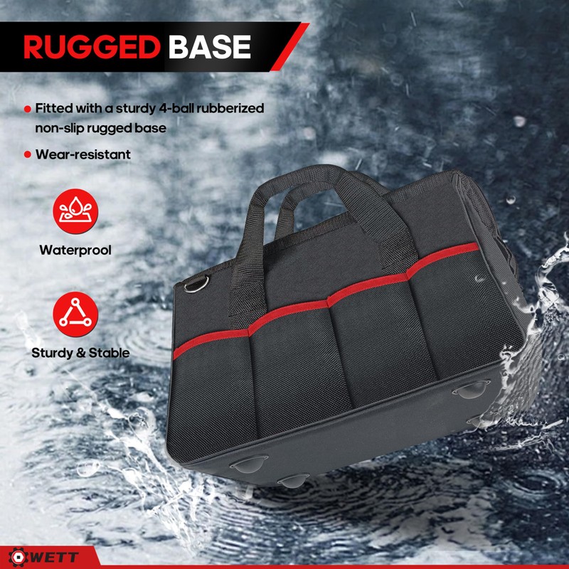 - Secure Storage Solution: The heavy-duty tool bag is equipped with a robust 4-ball rubber non-slip sturdy base, enhanced stability with anti-slip and abrasion protection to prevent movement