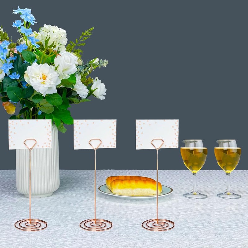 Wettin 12Pcs Unique Place Card Holder with 14Pcs Place Cards, Table Number Holders, Table Card Holder, Table Number Stands, Picture Clips Name Card Photo Holder(Rose Gold).