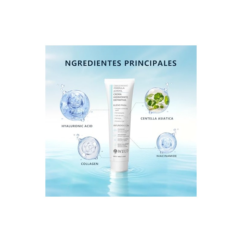 🌟 ⭐ WEUD Crema Coreana Original, Crema Hidratante con Niacinamide, Centella Asiática, Colágeno, Hialuronato de Sodio, 100% Natural, Hipoalergénica, Crema Facial para Todo Tipo de Piel (100g/3.53oz) ⭐ 🌟