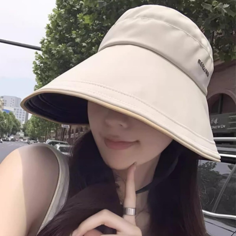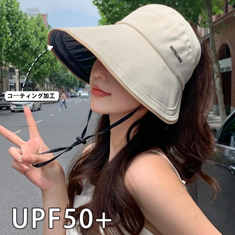Weuiean JOMI-183 UV Protection Cap, Women's, Light Shielding Coating, UV Protection, Wide Brim, Elastic Cord, Adjustable Size, Foldable, Soft Wire, Bucket Hat, Small Face Effect, beige