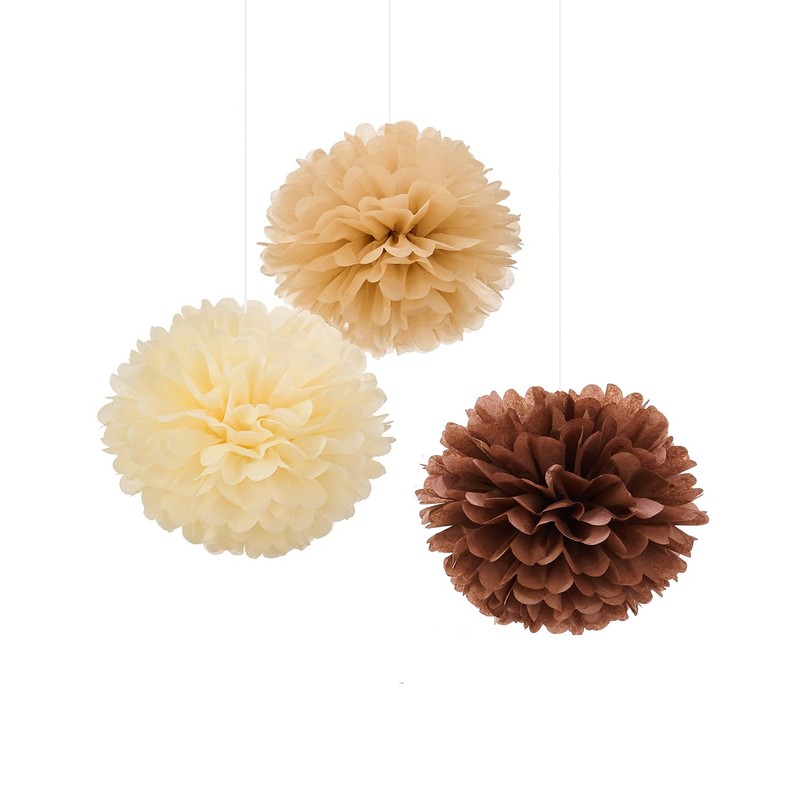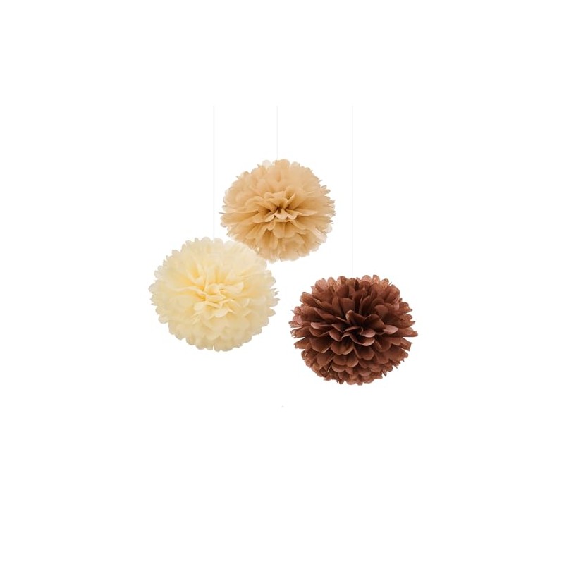 WEVEN Tissue Pom Poms Tissue Paper Flowers Tissue Fluff Balls Party Decorations 12-Inch Pack of 12 (Brown, Khaki, Ivory)