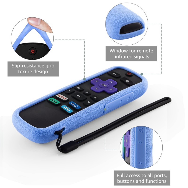 • Perfect Fit: This rok0 tv remote case fits snugly and the thickness is just right. Curved ergonomic design, easy to hold. The protective case is specially designed for all Roku TV brands, hisense roku tv remote, Roku Streaming Media Players, official roku voice remote, and tcl roku TV remote.