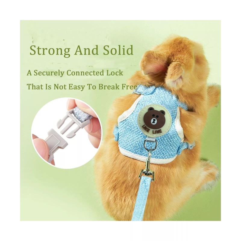 - Cute DesignThe rabbit strap has a cute three-dimensional bear logo, which will make your little furry friend look more cute and attractive, standing out from the crowd. When at home, your pet can wear this vest to add cuteness and liveliness. When going out, fix the traction rope on the vest.