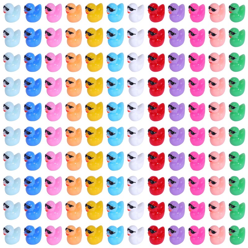 WEWAYSMILE 120pcs 12 Styles Mini Resin Figurines, Tiny Resin Ducks Miniature Figures, Mini Bright Resin Ducks, with sunglasses, for Home Garden Doll Room Landscape Decoration DIY