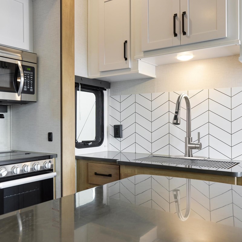 - Sleek Design---Tulip kitchen faucet design make your kitchen room simple and fresh,easy to match most sink.