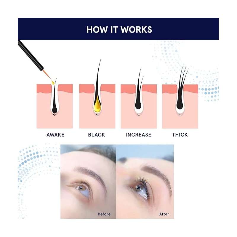 - PROTECTING HAIR FOLLICLES: Nutrients in our eyelash growth serum can promote local blood circulation, enhance hair follicle metabolism, improve hair follicle vitality, protect hair follicles, strengthen the hair medulla, and provide a safe growth environment for the eyelashes.
