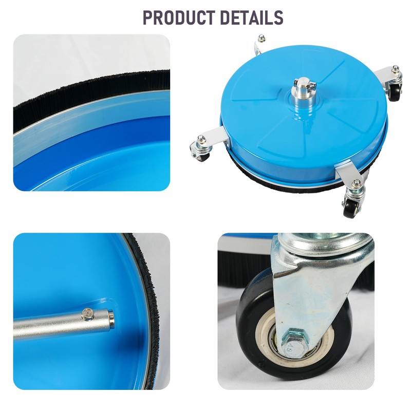 • Durable Material: The heavy-duty stainless steel construction with durable bearings ensures durability and resistance to rust and corrosion. The tough, flexible bristles protect adjacent surfaces and minimize water splash-out. Its weight ensures stability under high pressure, providing effortless control and reducing fatigue